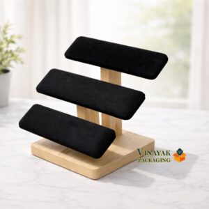 Efficiently organizes multiple bracelets, bangles, and chains in a clean and visible arrangement.