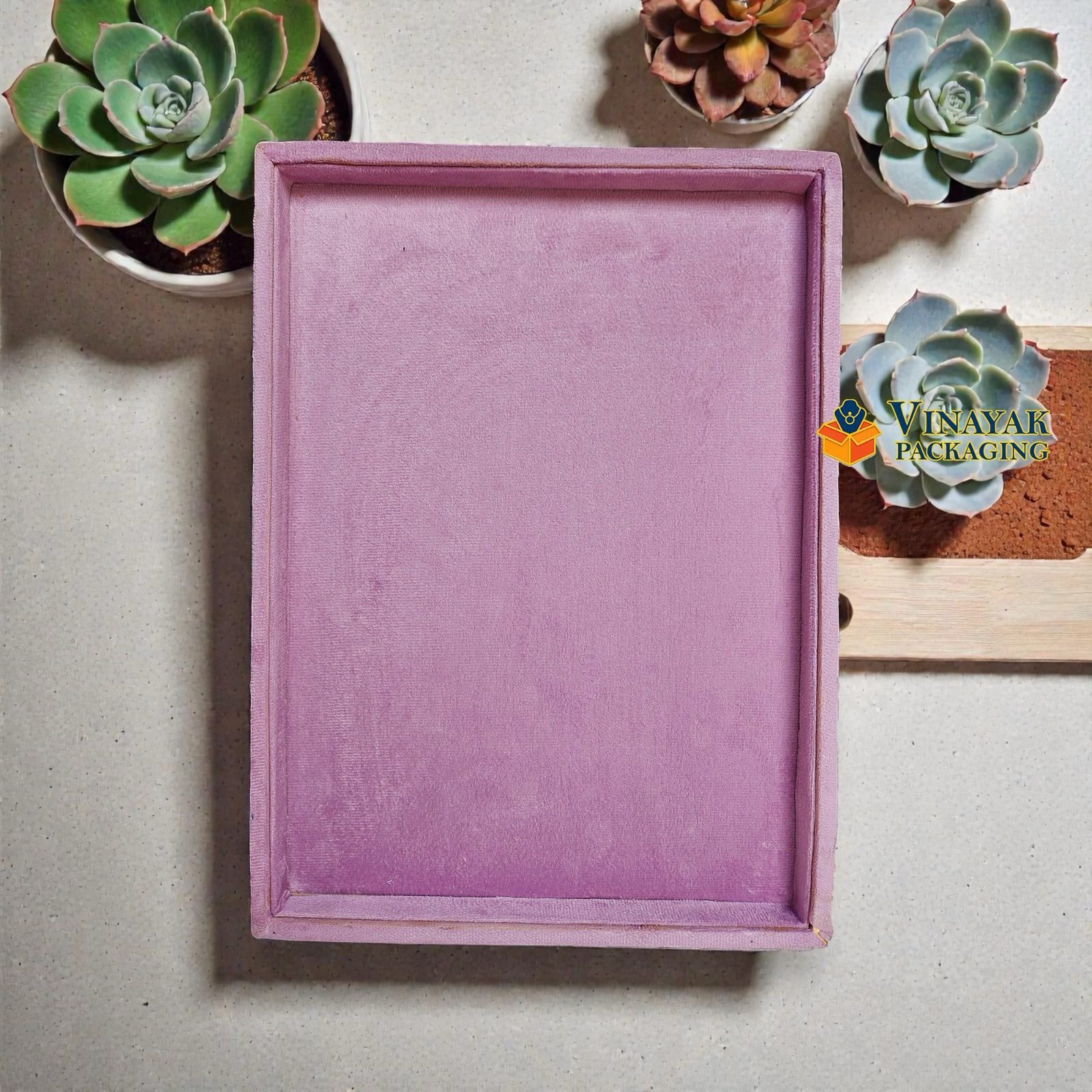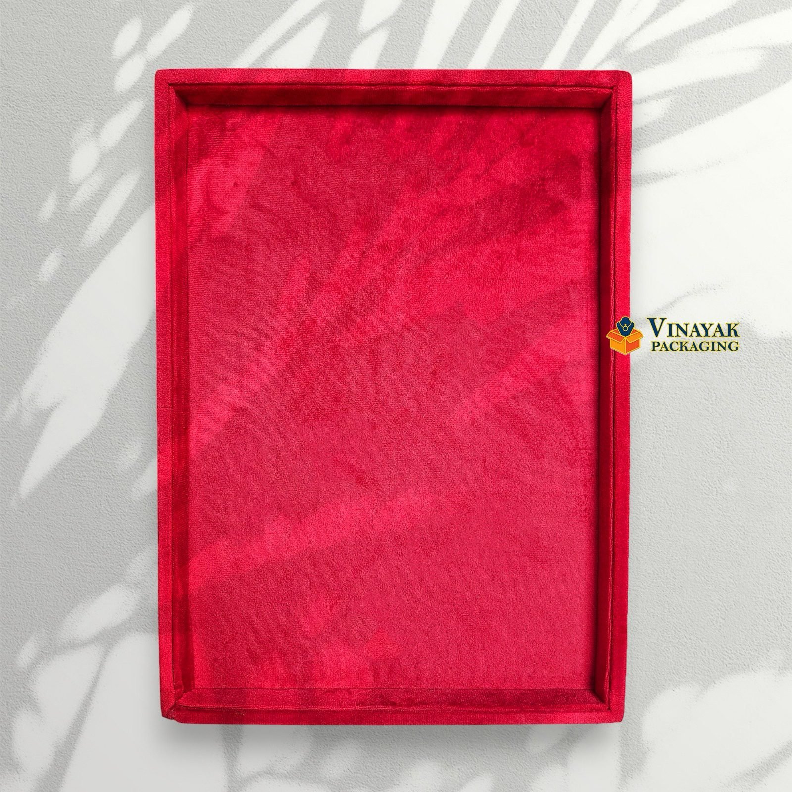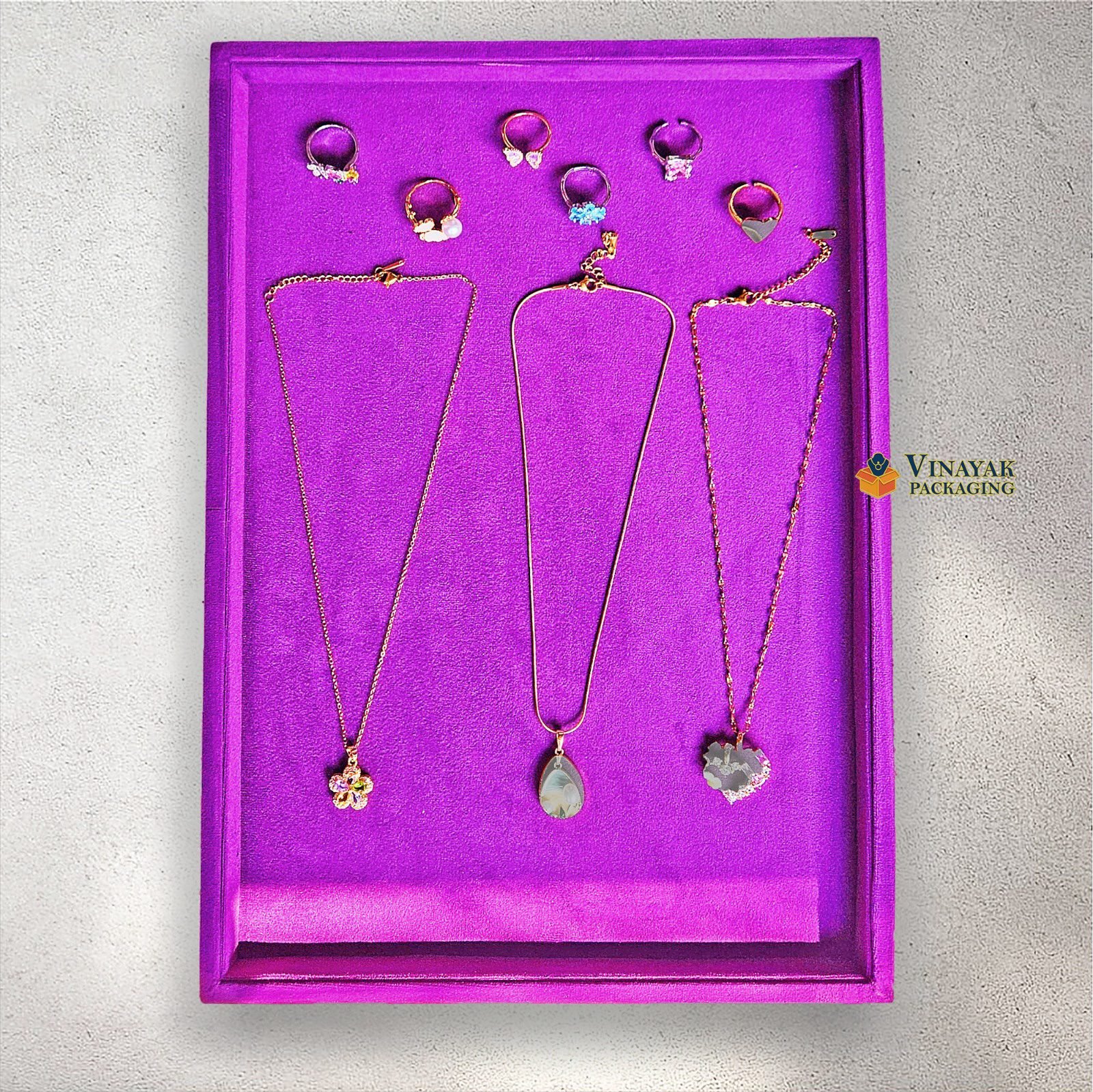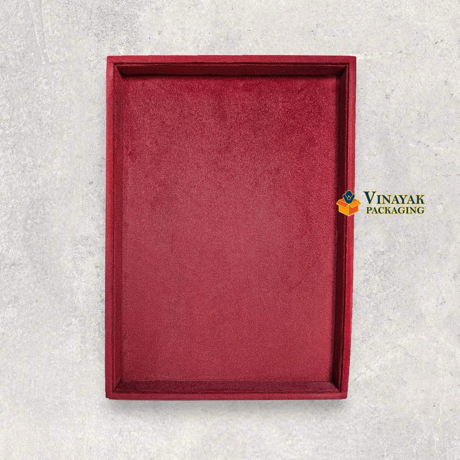 Luxurious velvet jewellery display tray with elegant raised edges for a premium presentation.