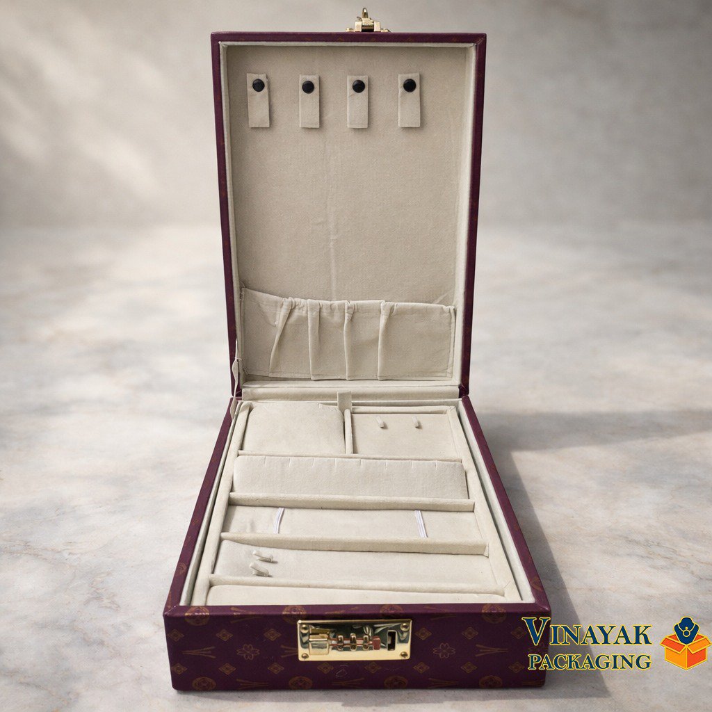 Premium Velvet Jewellery Storage Box with Lock – Multi-Compartment Organizer (size 8*12)