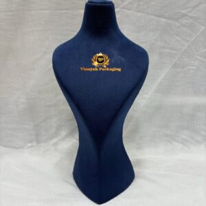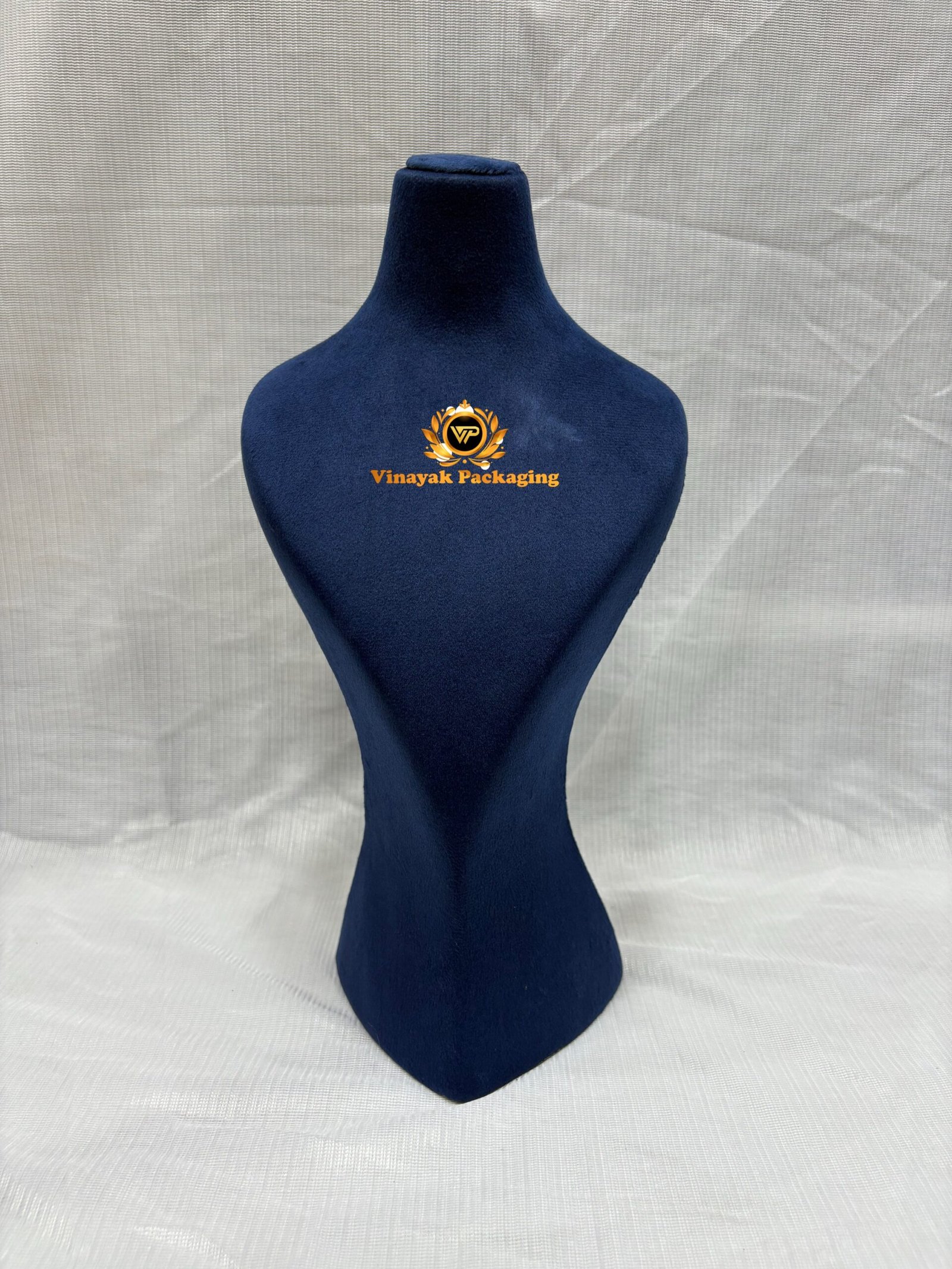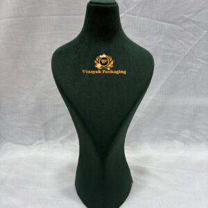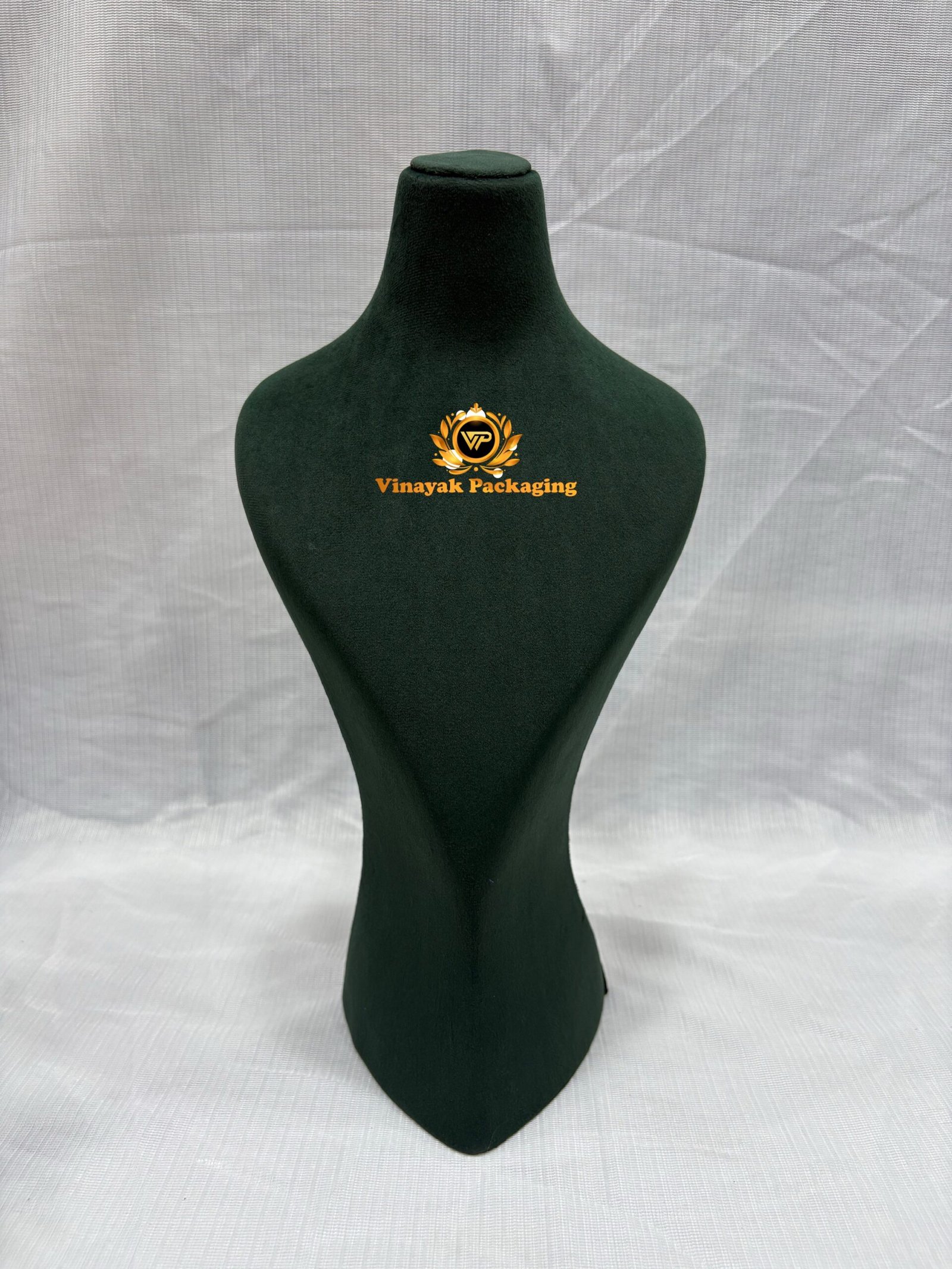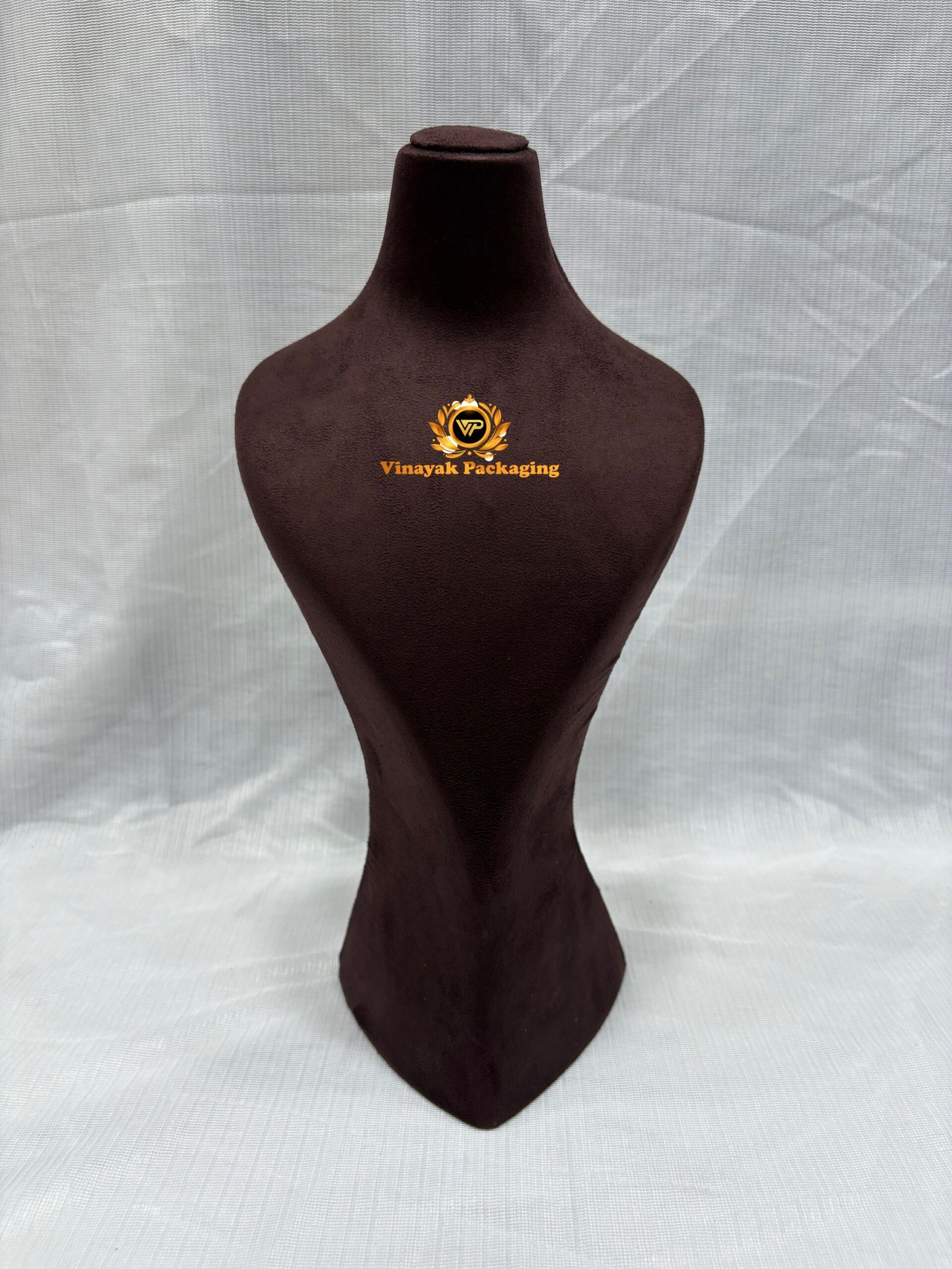 Ergonomic mannequin-style bust highlights necklace length and design clearly.