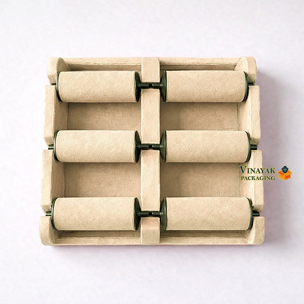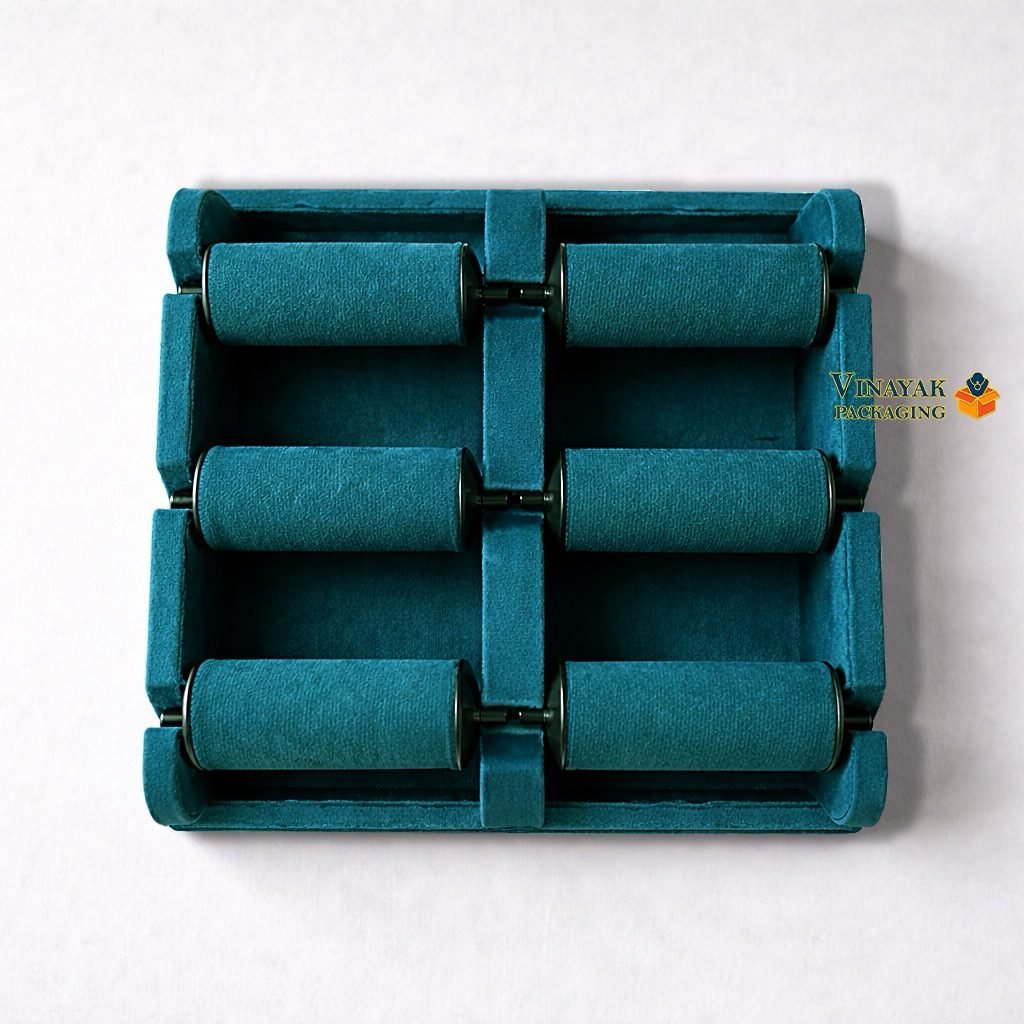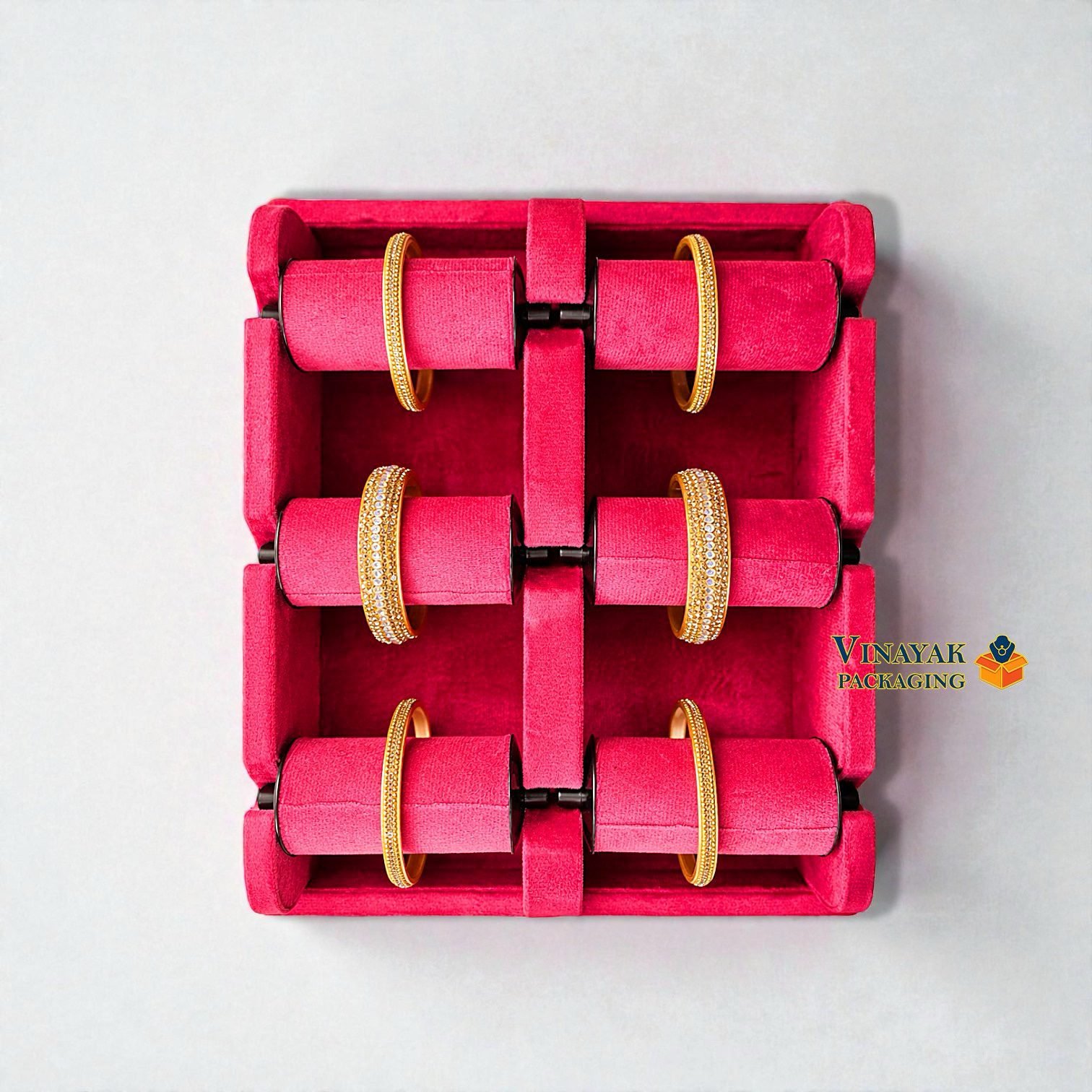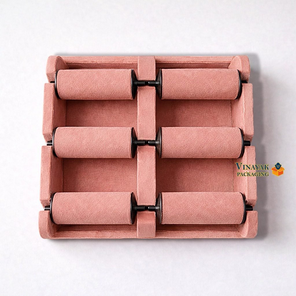 Velvet Bangle Display Tray – 6 Roll Jewelry Organizer Stand for Bangles, Bracelets & Kada