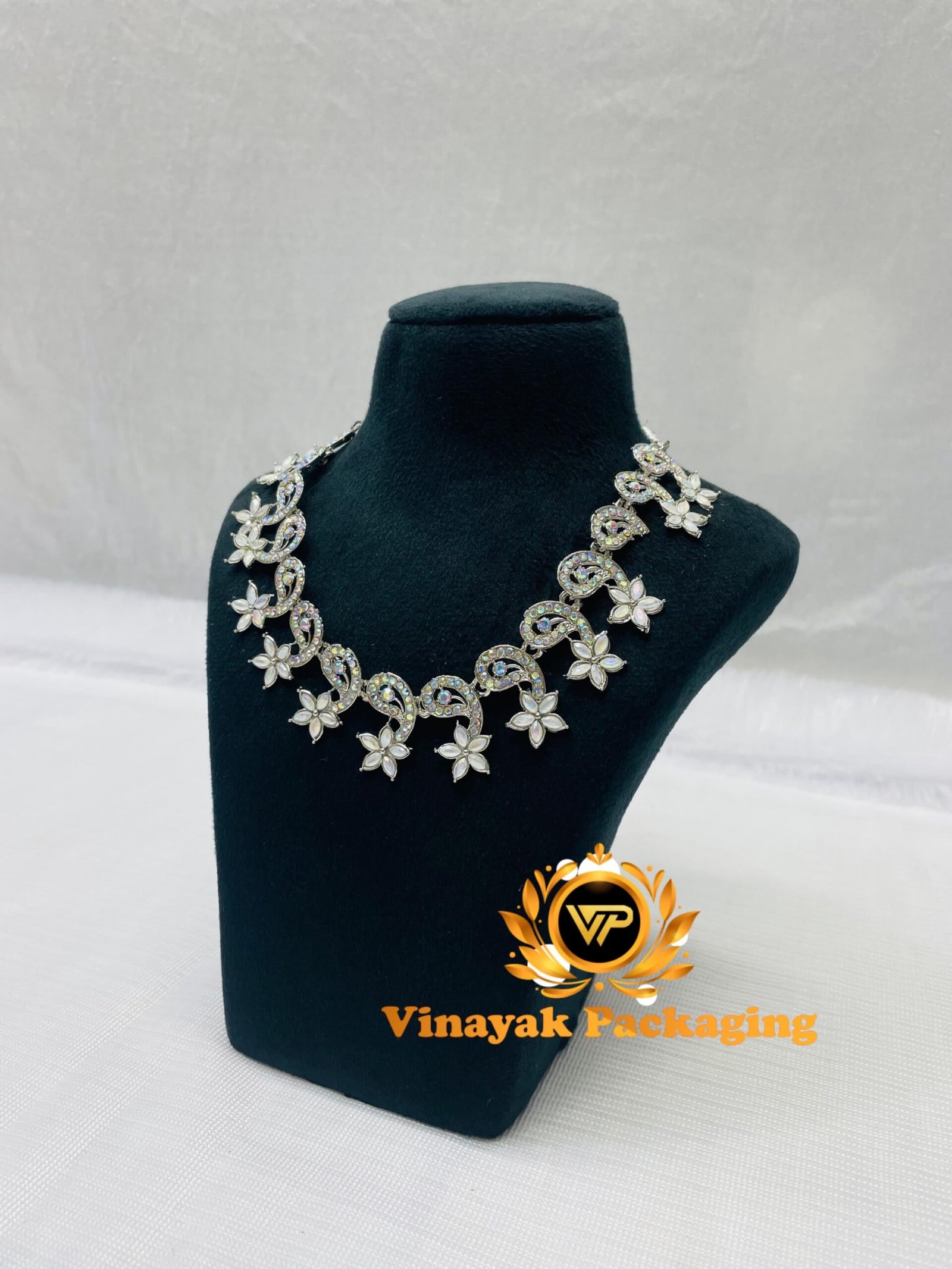 Soft velvet choker stand for premium presentation.