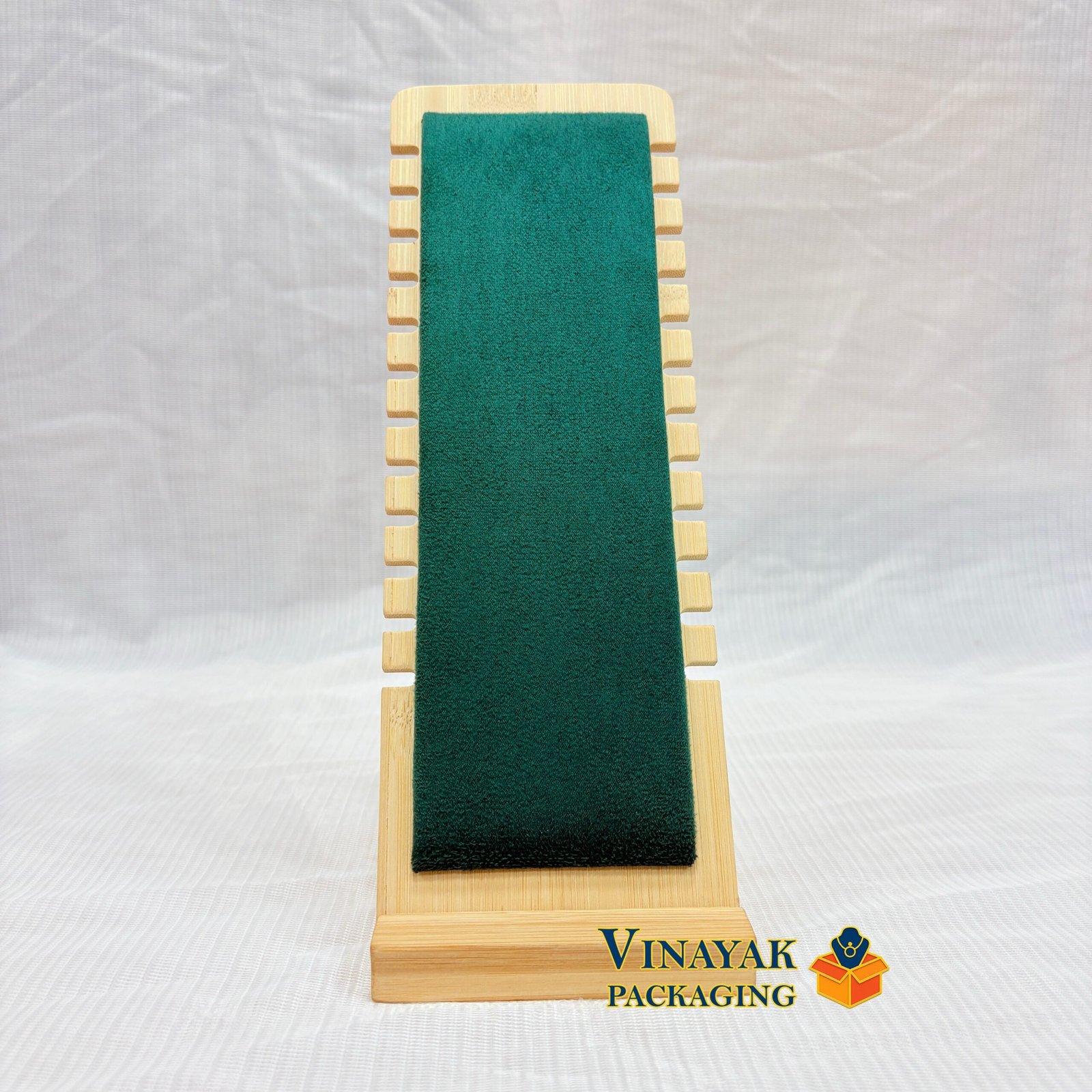 Elegant green velvet front panel for a rich and luxurious presentation.